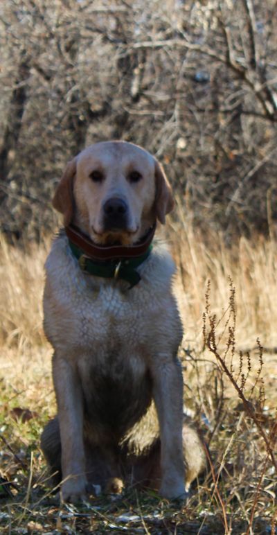 "Huck" is our champagne labrador retriever stud he carries every color is very blocky and handsome and is about 95lb. We are expecting exceptional pups from him along with white lab puppies